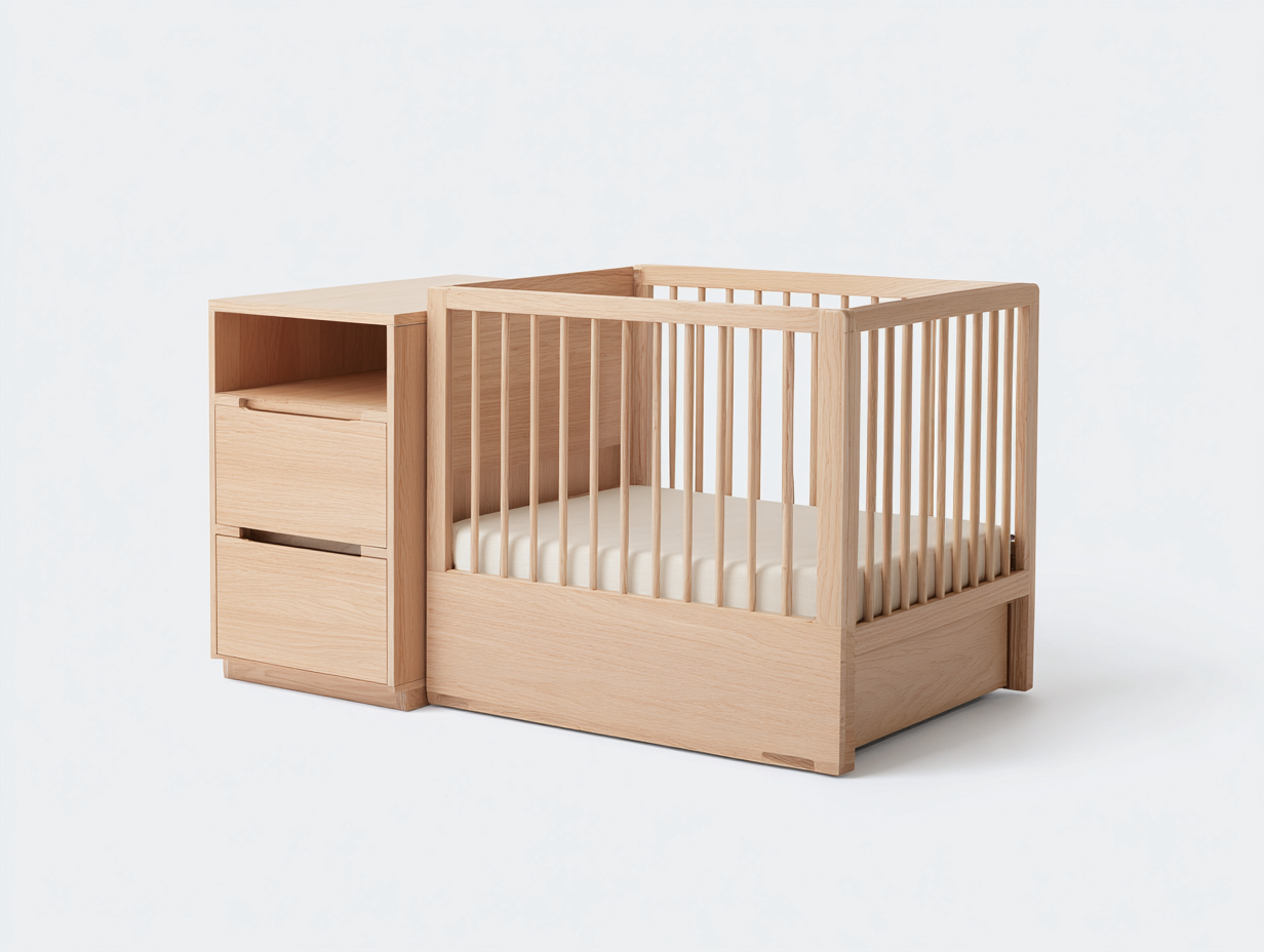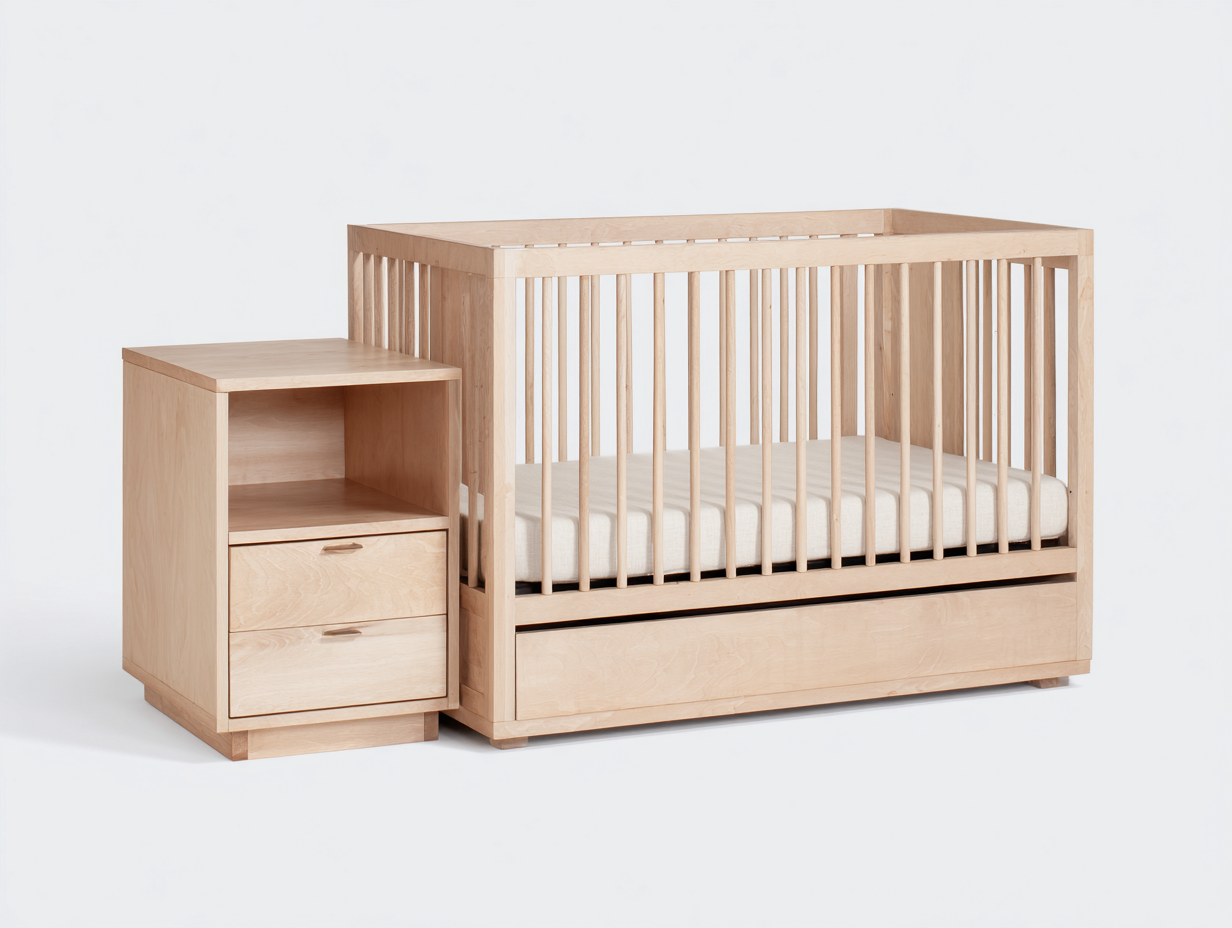 Cunas para bebé madera - 145x75x95 cm - color natural - con almacenamiento lateral diseño moderno - para dormitorio infantil