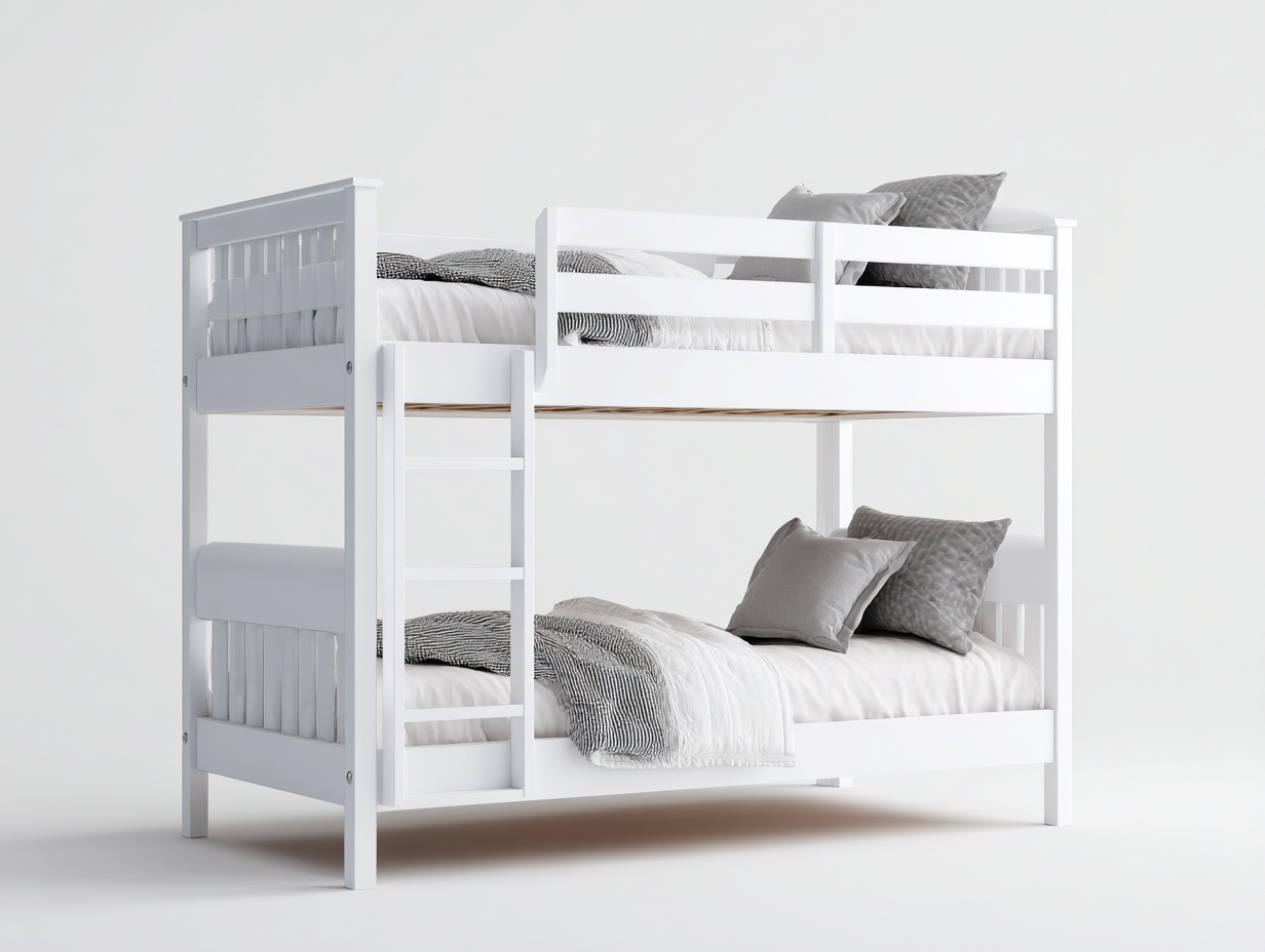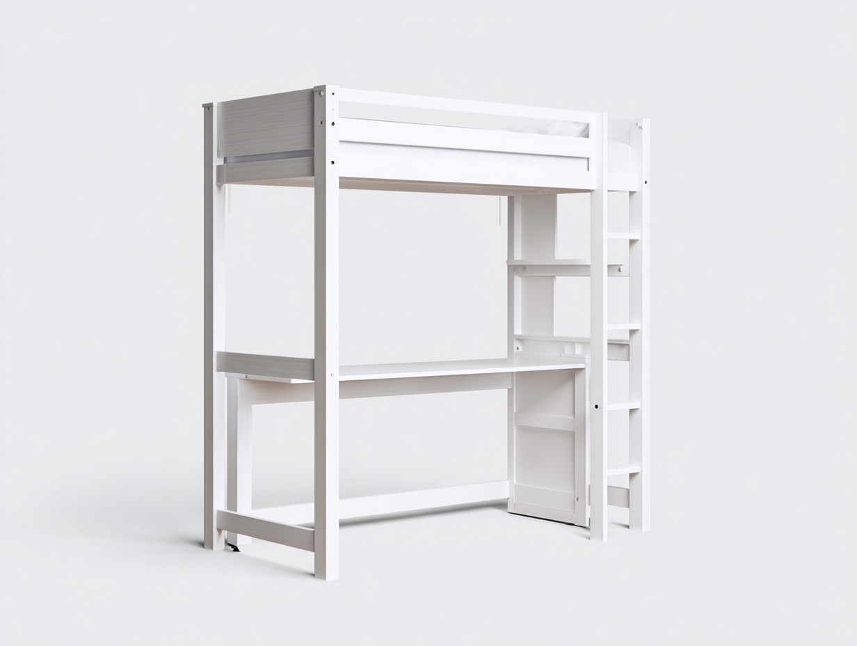 Litera alta madera - 200x100x180 cm - color blanco - con escritorio y estantería integrada diseño moderno - para dormitorio juvenil