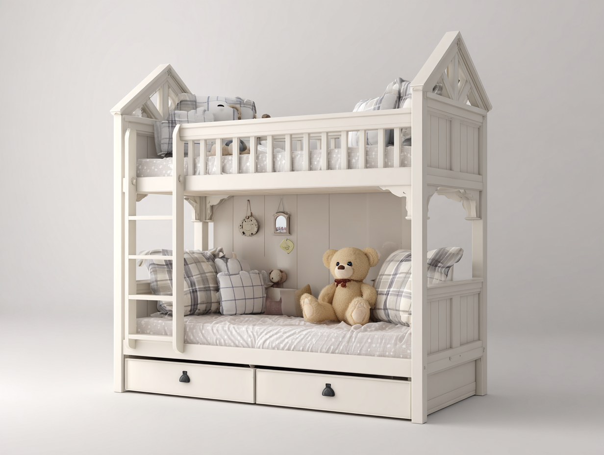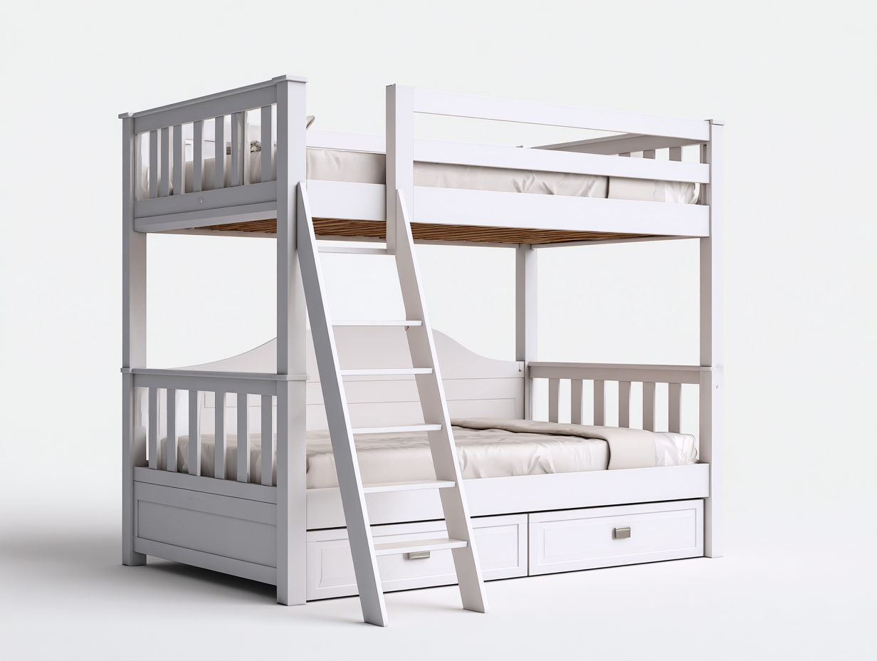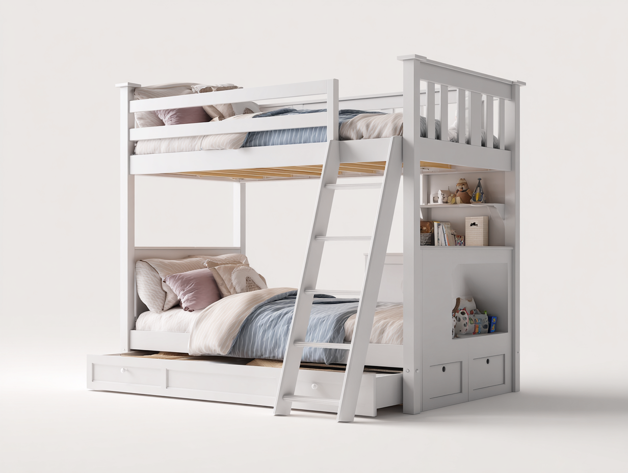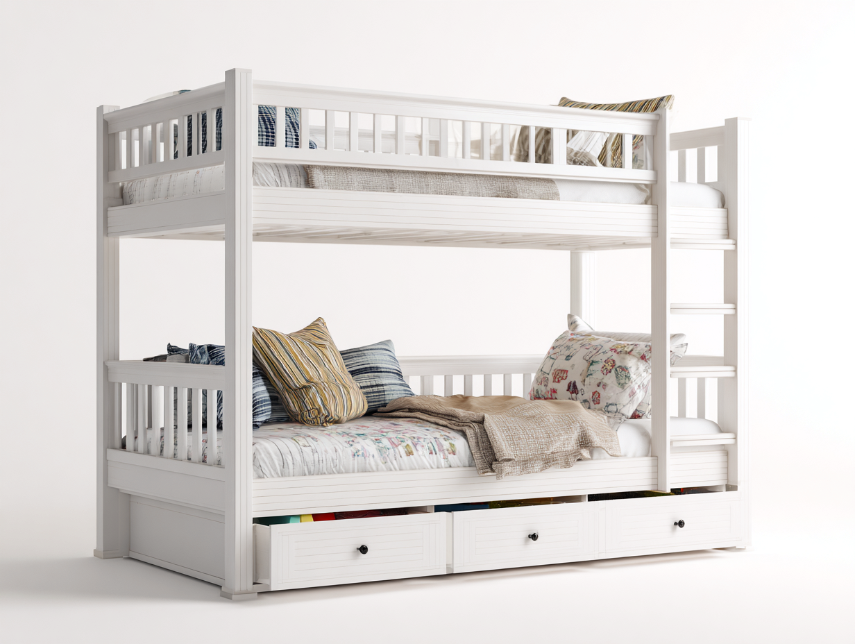 Litera madera - 200x100x165 cm - color blanco - con escalera lateral y cajones inferiores diseño moderno - para dormitorio infantil